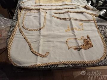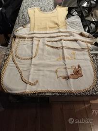 grembiule da cucina con pettorina anteriore e posteriore, dotato di tasca destra e di ricamo a mano, mai usato manca solo il cartellino in quanto sempre stato in cassetta