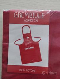 Grembiule da cucina colore rosso 100% cotone misura cm 60*90 con scritta "se a Natale cucino io ci sarà un perché"