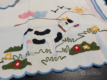 bellissimo grembiule in cotone con importante e simpatico ricamo . Orlo smerlato. Nuovo mai usato. Presenta una piccolissima macchia dovuta al tempo che si può facilmente togliere con acqua ossigenata e bicarbonato.