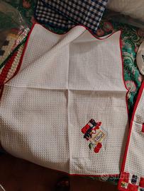Grembiule con pettorina da cucina in vera spugna di cotone a nido d ape completo di asciugamano accompagnato. Nuovo, mai usato ancora in confezione comprato ai ricami fiorentini, vendo causa inutilizzo possibilmente in zona