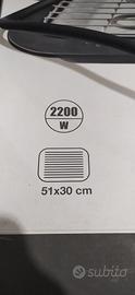 Misure di grandezza griglia sono 51x30 cm potenza 2200W regolabili tramite manopola posta sulla griglia.