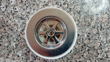 Griglia di scarico per lavandino o lavabo con tappo vendo per non averlo mai utilizzato. La misura della griglia in acciaio è diametro esterno 8 cm e esterno 5 cm.