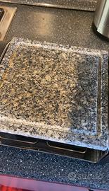 Vendo grill a pietra usato due volte. Nella scatola originale ci sono 4 piccole piastre (nere) per la cottura di altro alimenti da posizionare alla base del grill, 4 palette di legno per poter mescolare/raccogliere gli alimenti sulle piastre piccole senza graffiarle e la pietra lavica per cucinare sulla parte superiore. Prezzo trattabile
