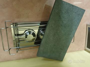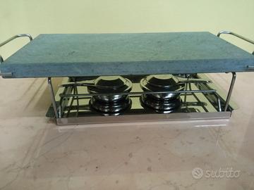 Grill da tavolo in pietra ollare naturale con 2 bruciatori. Dimensione 44x19 altezza 11.5 cm Spese di trasporto escluse