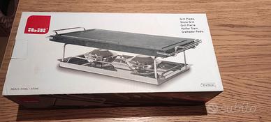 Vendo grill in pietra naturale con supporto in acciaio inox, marca IBILI, dimensioni 37x18 cm, ancora nuovo e sigillato nella sua confezione originale.