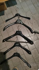 Gruccie appendiabti in plastica in varie forme. Quantità: circa 60 in diverse taglie. In cui circa 20 gruccie per giacche - spalle larghe.