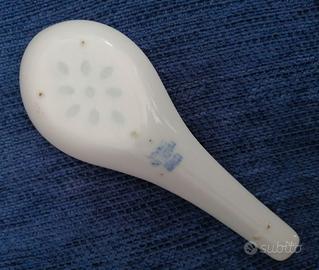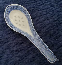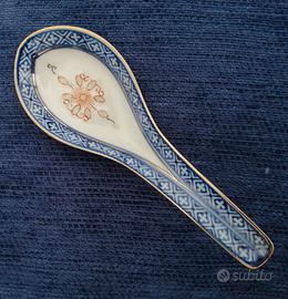 Gruppo di cinque "cucchiai" in porcellana cinese tipo grano di riso, degli anni '70 - '80. Lunghezza cm 15 ciascuno. Due modelli di decorazione (vedere foto) . Nuovi, mai utilizzati. In perfette condizioni.