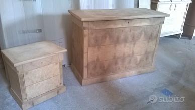 gruppo comò e due comodini in legno e radica grezzi , sono disponibili a seguito chiusura bottega artigiana