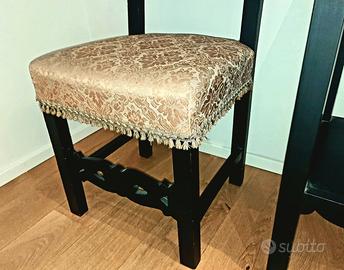 Gruppo di 4 sedie e tavolino liberty anni ‘20, per l'ingresso o il corridoio . La seduta è imbottita, con struttura solida in legno color nero. Le misure 43 x 46 cm. h. 93 cm. La singola sedia 40 euro, il tavolino 50 euro. Posso spedire.