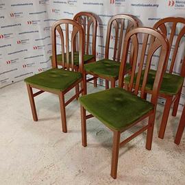Gruppo di 6 Sedie in legno. Struttura in legno con rivestimento in tessuto. In