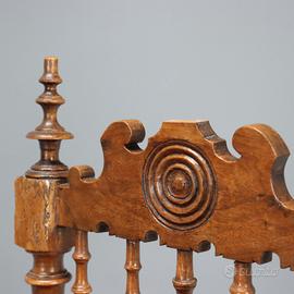 a rocchetto unite da traverse anch'esse tornite. Seduta in velluto imbottita