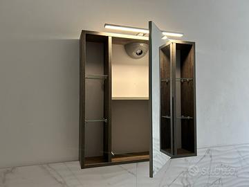 Pensile con anta a specchio e luce integrata.