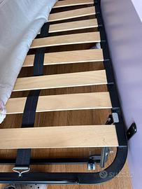Gruppo letto cameratta a ponte Euromobili, modello M62 Vioola Iris e Rovere Chiaro misure 198x94cm, letto principale con materasso a molle insacchettate Simmons, letto secondario con materasso generico fatto si misura, entrambi con doghe innlegno come da foto, buono stato.