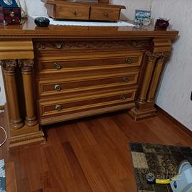 Gruppo letto comò + 2 comodini legno lavorato Como L.146 p.54 h.90 comodini l.60 h.45