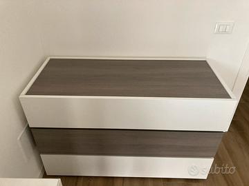 Vendo per cambio camera gruppo notte moderno composto da un comó a tre cassettoni e due comodini a due cassetti marca Tomasella. Condizioni come nuovo.