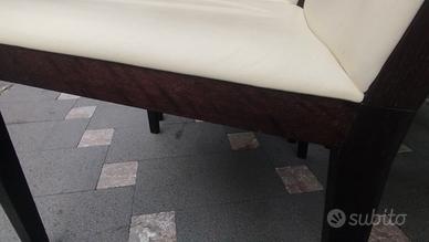 Gruppo sei sedie Poltrona Frau mod. Beatrice design Monica Forster ,massello di rovere finitura wenge' , schienale in multistrato di faggio curvato impiallacciato in rovere. Rivestimento pelle Frau bianca. Misure altezza 77 cm - seduta 45 cm - larghezza 51 cm - profondità 57 cm - ottimo stato . Info al 349 561 1398