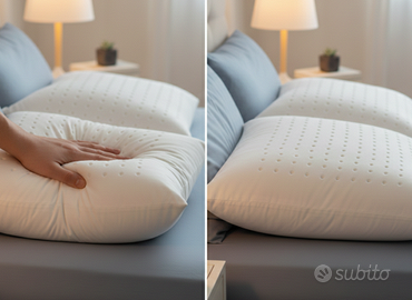 Cuscino in 100% Memory Foam termosensibile e traforato, progettato per modellarsi sulle tue forme garantendo un ricircolo d'aria costante e un sostegno cervicale superiore. La sua struttura alveolare elimina i punti di pressione e il calore in eccesso, offrendo un riposo fresco e rigenerante racchiuso in un elegante guscio esterno in Jacquard.
