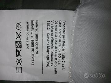 L'altro bianco made in Italy, 100% poliestere per l' imbottitura, anima in poliuretano e 100% cotone per la fodera.