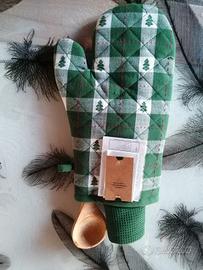 Set composto da guanto cucina, più canavaccio e mestolo in stile natalizio bianco e verde, marca Kasanova. In confezione originale con etichetta mai utilizzati
