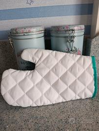 Guanto da forno NUOVO. Mai usato e si vede dalle foto. Morbido e imbottito, un lato trapuntato bianco, l'altro lato con motivo a quadretti e cuore centrale con scritta ricamata. Ottimo per forno o come semplice presina.