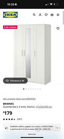 Guardaroba a 3 ante IKEA BRIMNES Bianco Dimensioni: 117x50x190 cm Appresenta una piccola imperfezione interna come in foto.