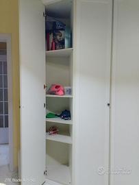 Modello "Cecilia" acquistato da Mondo Convenienza. Possibilità di aggiungere moduli. Il modulo a destra porta specchio a tutta altezza su un'anta, n. 1 ripiano e tubo appendiabiti. La cabina armadio angolare n. 1 ripiano e tubo appendiabiti. Ripiani in tutti e due i moduli a sinistra. Ingombro totale pareti: 2,15 mt. a sinistra, 2,05 mt. a destra, Profondità 55 cm.