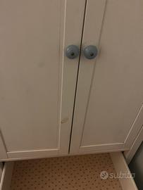 Armadio utilizzato,ma ancora in ottimo stato,pomelli cambiati,regalo 2.confezioni nuove di pomelli (Zara home),ritiro sul posto, preferibilmente così com’è,ma posso anche smontarlo.Un po’ rivinato davanti ma, con una pennellata di bianco nn si vede più.Zona porta venezia,Milano.