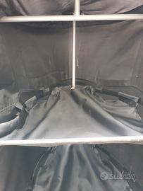 Guardaroba in tessuto nero con ruote.