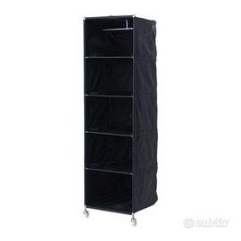 Guardaroba con rotelle e maniglia per spostamenti completo di sacca per trasporto. Molto comodo per tutte le esigenze. Misure H 164 P 68 L 52. Colore nero. Consegna a mano