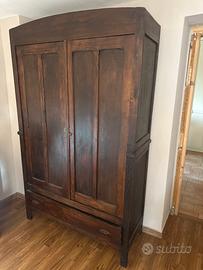 Guardaroba in legno con ripiani intetni e appendiabiti con bastone interno ha un cassettone .nel piano inferiore molto capiente ristrutturato esternamente e internamente misure Larghezza 128 cm Profondita 47 cm Alltezza 212 cm Smontabile in 2 parti per trasporto Il mobile e’ molto bello e capiente Vendo per rinnovo arredamrnto Vendo 250 trattabili dopo visione oggi sabato 18/4 prezzo a 150 non trattabili gia ribassato per urgenza di liberare la stanza