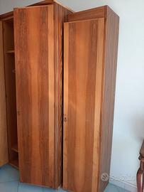 Guardaroba di legno vero, formato da 2 moduli a doppia anta misure h 230cm x l 100cm ciascuno x p60 + 1 modulo con scaffali h 220cm x l 50cm x p 40cm + 1 modulo con appendiabiti h 220cm x l 50cm x p 40cm