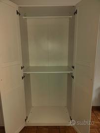 È composto da 3 strutture da 2 ante ciascuna più un elemento angolare anch'esso con due ante per un totale di 6 ante bianche e 2 ante a specchio. Tutte le cerniere sono a chiusura rallentata.