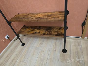 Vendo appendiabiti/guardaroba stile industriale con struttura in metallo nero e ripiani in legno effetto vintage (misure in foto).