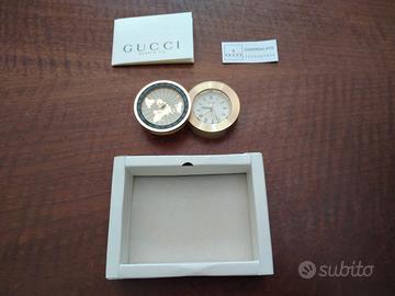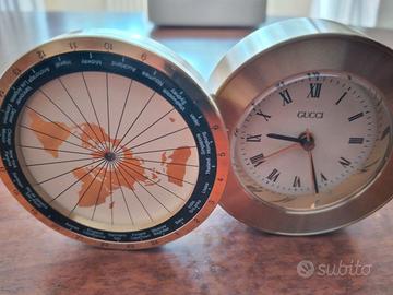 Gucci Orologio da tavolo/camera con meridiano mondiale, laccato Oro 999, misure Lunghezza 12cm, Larghezza 6cm, completo di confezione originale Gucci con sacchettino scamosciato e certificato di garanzia (per un regalo prestigioso). Vendo €. 300.
