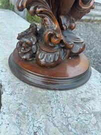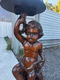 Gueridon scultoreo in noce, un tavolinetto decorativo, spesso dotato di un sostegno centrale scultoreo, realizzato in essenze lignee pregiate come il noce. Si può fare anche consegna a mano su Milano