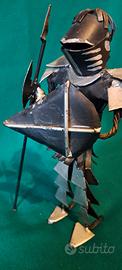 Guerriero medievale lavorato in ferro , artigianale , con Armatura, Scudo e Lancia.