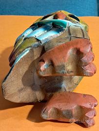 Gufo artigianale in legno massello colorato da popolazioni africane, secondo la loro tradizione sarebbe da considerare un portafortuna, altezza cm. 16