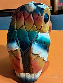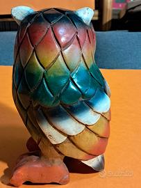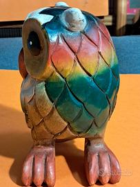 Gufo artigianale in legno massello colorato