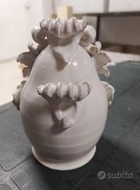 Gufo bianco in ceramica artigianale h cm 17 lavorato a mano