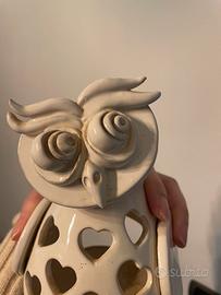 Gufo traforato per inserimento di candele Altezza circa 17 cm Originale ceramica di Bromo Oronzo Grottaglie (Puglia)