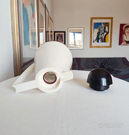 Caraffa termica Guzzini modello Bon Ton, un'icona del design italiano degli anni '80, design S.T.G. (Studio Tecnico Guzzini) Materiali: corpo in polipropilene, una plastica molto resistente, leggera e sicura (senza BPA). Guarnizioni in silicone. Ampolla interna in vetro termoresistente. Dimensioni: Altezza circa 27 cm e larghezza (compreso manico) di 18 cm Capacità: 850 cc (0,85 litri) Progettata per mantenere a lungo la temperatura di bevande calde o fredde Made in Italy Presenti lievi e normali segni del tempo Perfetta per gli amanti dello stile postmoderno, collezionisti e appassionati di arredo vintage o per chi desidera aggiungere un tocco retro-chic alla propria tavola o ufficio #thermos #termos #caffè #tè #acqua #drink #retro #anni80 #colazione #tavola #arredo #oggettistica #collezione #conica #minimalista