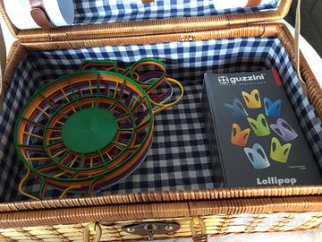 Vendo cestino vimini Guzzini pic-nic con posate bicchieri e piatti come in foto. Mai utilizzato. Ritiro no spedizione.