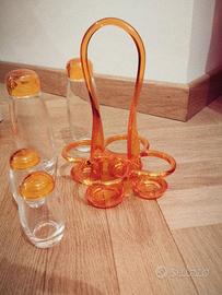 Set Guzzini arancio, olio, aceto, sale e pepe; formaggera e posate insalata.