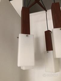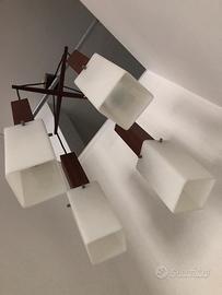 Rara lampada a sospensione guzzini, a 4 luci . in massello di palisandro e acrilico anni 60