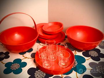 Guzzini - Set da pic nic Pic Boll - Colore rosso. Il set comprende 6 piatti piani, 6 piatti fondi, 6 piattini da frutta o dolce, 6 bicchieri, 2 contenitori a semisfera, 1 manico. In ottime condizioni.