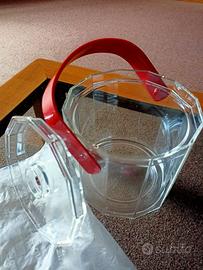 Secchiello ghiaccio Zodiaco 15xh14 e brocca acqua abbinata 12xh23. Colore trasparente ben mantenuto con eleganti profili manici rossi. Classici Guzzini in materiali plastici di qualità, vero design italiano. Usato poco, condizioni più che buone. Perfetto per pranzi, occasioni varie o seconda casa. Ritiro a Milano, zona Città Studi/Casoretto.