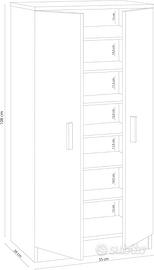 Composto da 6 ripiani con possibilità di estrazione per fughe maggiori. Perfetto come guardaroba ausiliario in stanze, camere da letto, corridoi ...