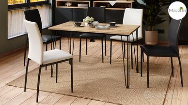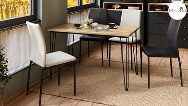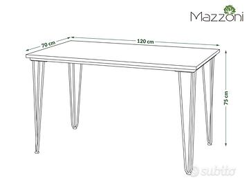 Un tavolo elegante perfetto sia per la cucina che per la sala da pranzo. Il piano misura 120x70 cm il che offre spazio sufficiente per mangiare o lavorare comodamente. Uno degli elementi principali che contraddistinguono questo tavolo sono le sue gambe realizzate in tondino d'acciaio. Questo materiale non solo rende stabile e resistente l'intera struttura ma conferisce anche un carattere elegante. Grazie al suo design minimalista, il tavolo HAIRPIN si adatterà perfettamente a molti interni differenti che siano in stile moderno, loft, industriale e persino classico. È la scelta ideale per le persone che apprezzano la combinazione di funzionalità ed estetica.