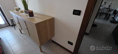 Vendo madia in legno color rovere con 3 ante in rattan intrecciato, stile nordico/moderno.