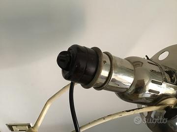 Vecchia piantana con ruote, altezza del fusto 160 centimetri circa. Base 40 centimetri per lato, materiali acciaio ferro e bachelite, cablata e funzionante con luce di casa